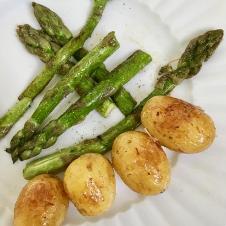 Menus du Vendredi 8 mai 2020 Déjeuner Saucisson sec au fenouil Asperges poêlées avec des pommes de terre nouvelles Mangue Dîner Bouillon de champignons vite fait Salade de bar (le reste) à la citronnelle Fromages: camembert, brebis Fraises guariguette à la crème